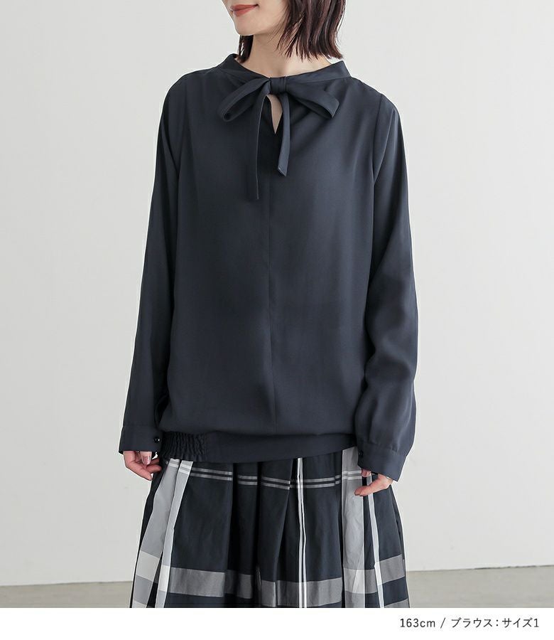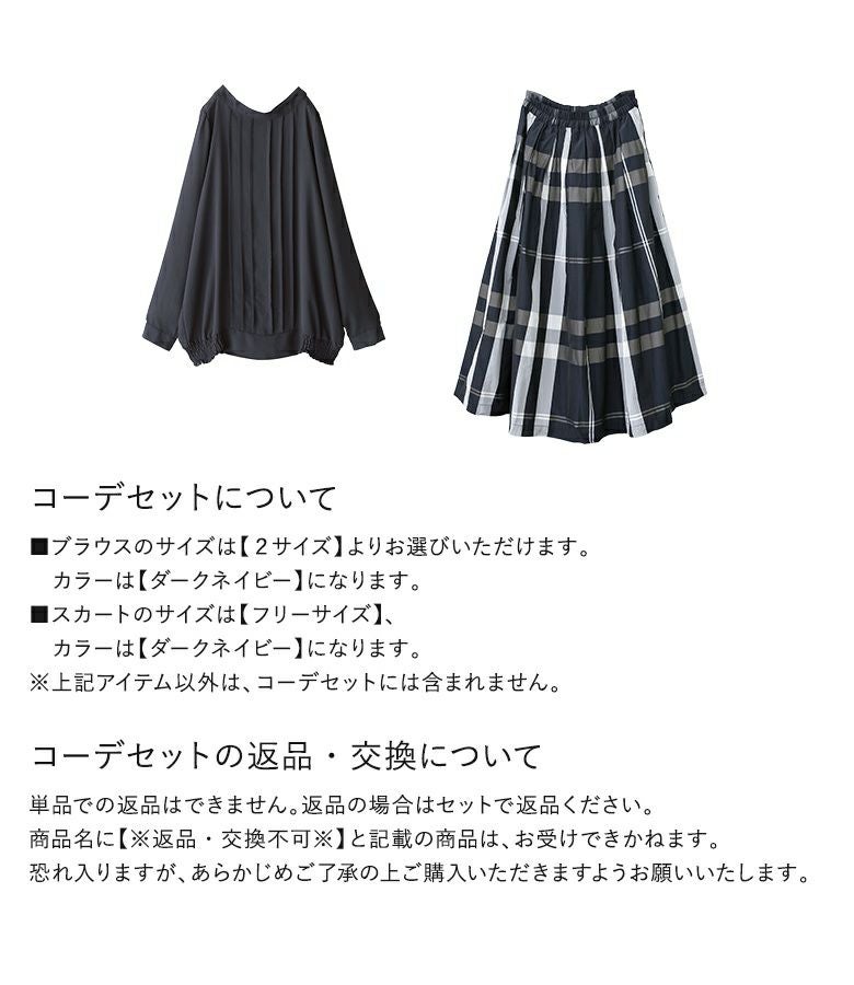 『2WAYシフォンブラウス×チェック柄タックフレアスカートコーデ2点SET』
