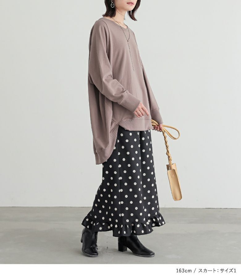 4. 『ミニ裏毛デザインプルオーバー×ミニフリルドットナロースカートコーデ2点SET』【メール便不可】【40】