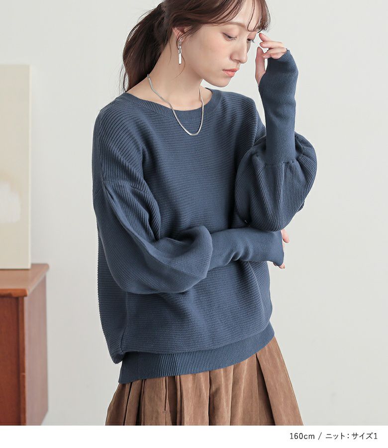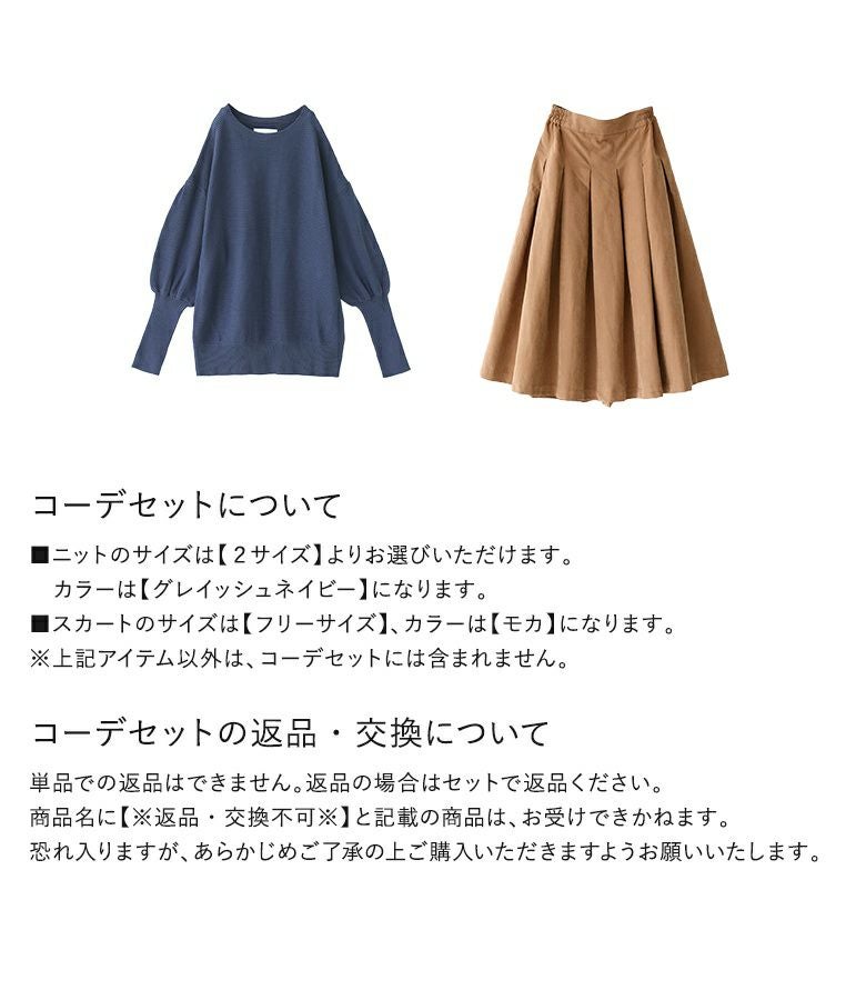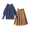 『指穴ボリューム袖ニット×スエードタッチタックスカートコーデ2点SET』