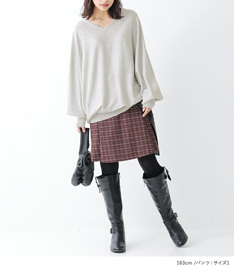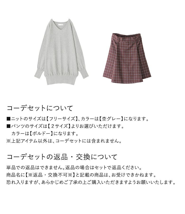 『スカート風ツイードハーフパンツ×Vネックドルマンニットコーデ2点SET』