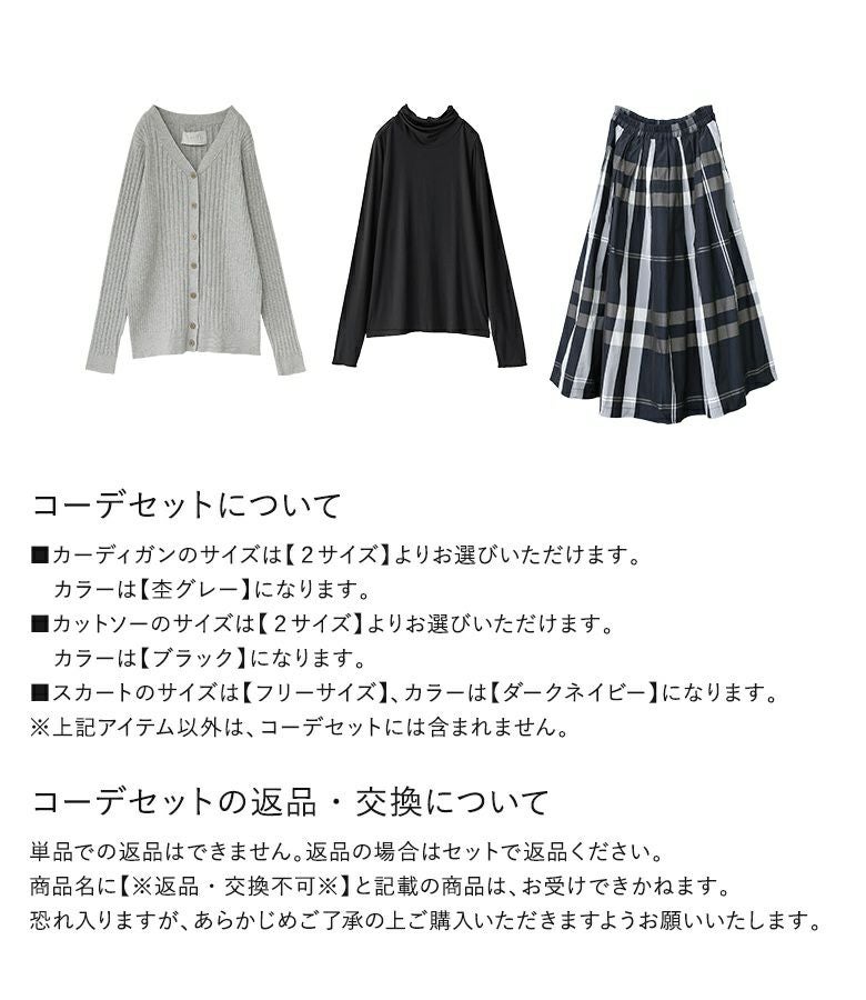 4. 【送料無料】『リブニットカーディガン×タートルネックモチモチロンT×チェック柄タックフレアスカートコーデ3点SET』【メール便不可】【50】