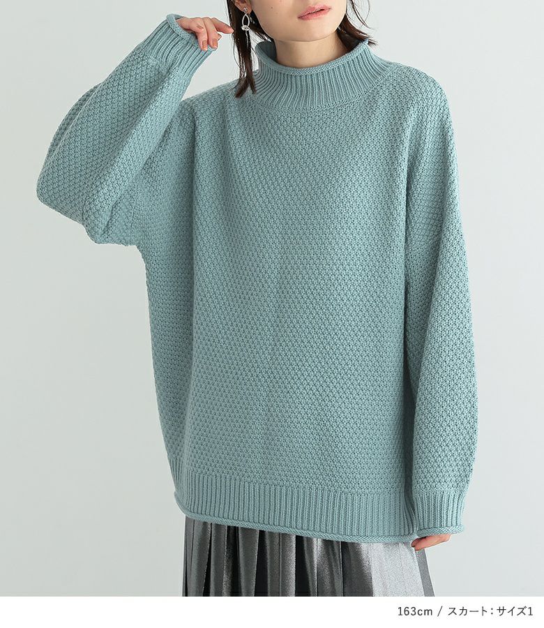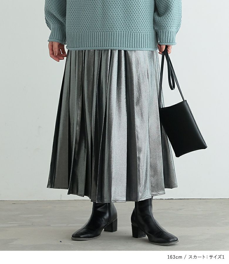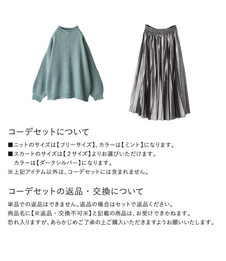 4. 【送料無料】『鹿の子編みハイネックニット×メタリックプリーツスカートコーデ2点SET』【メール便不可】【50】
