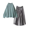 『鹿の子編みハイネックニット×メタリックプリーツスカートコーデ2点SET』