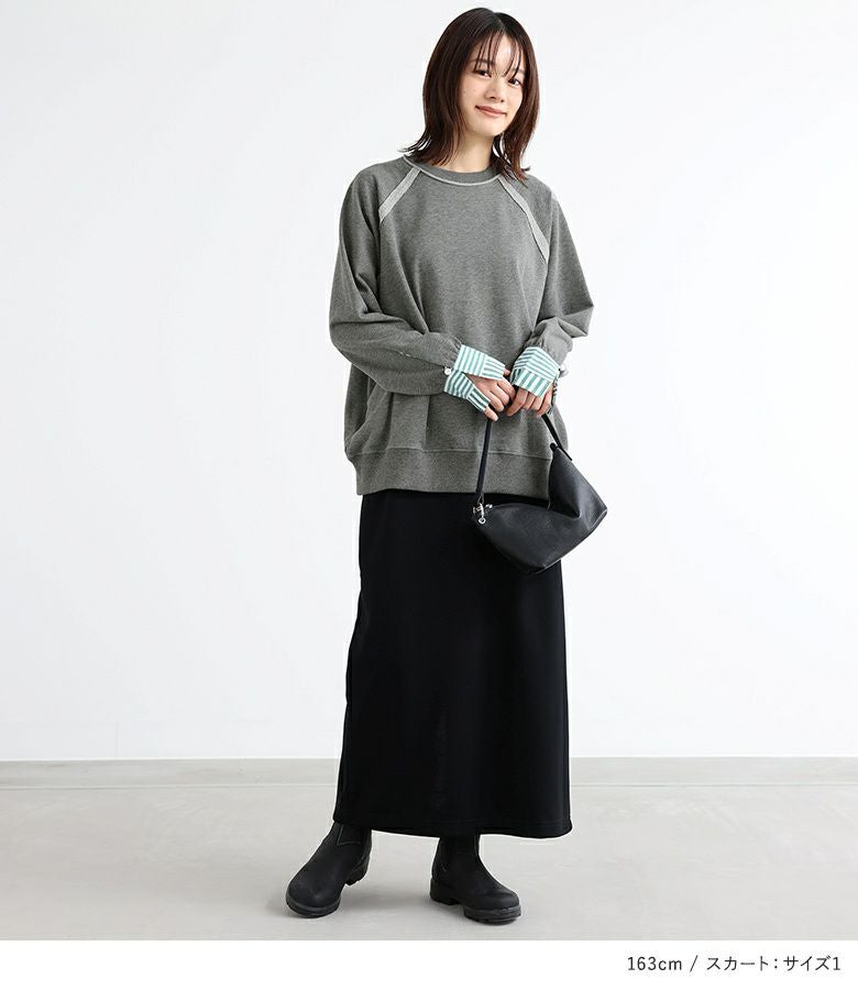 4. 【送料無料】『異素材カフス裏毛プルオーバー×ナローシルエットロングスカートコーデ2点SET』【メール便不可】【40】