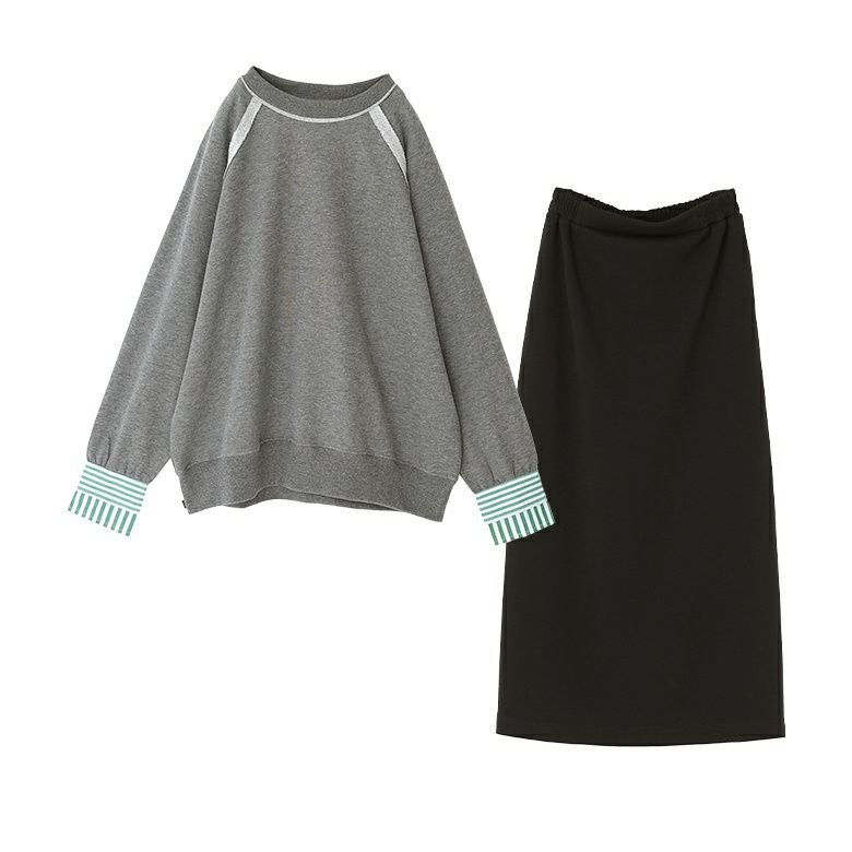 『異素材カフス裏毛プルオーバー×ナローシルエットロングスカートコーデ2点SET』