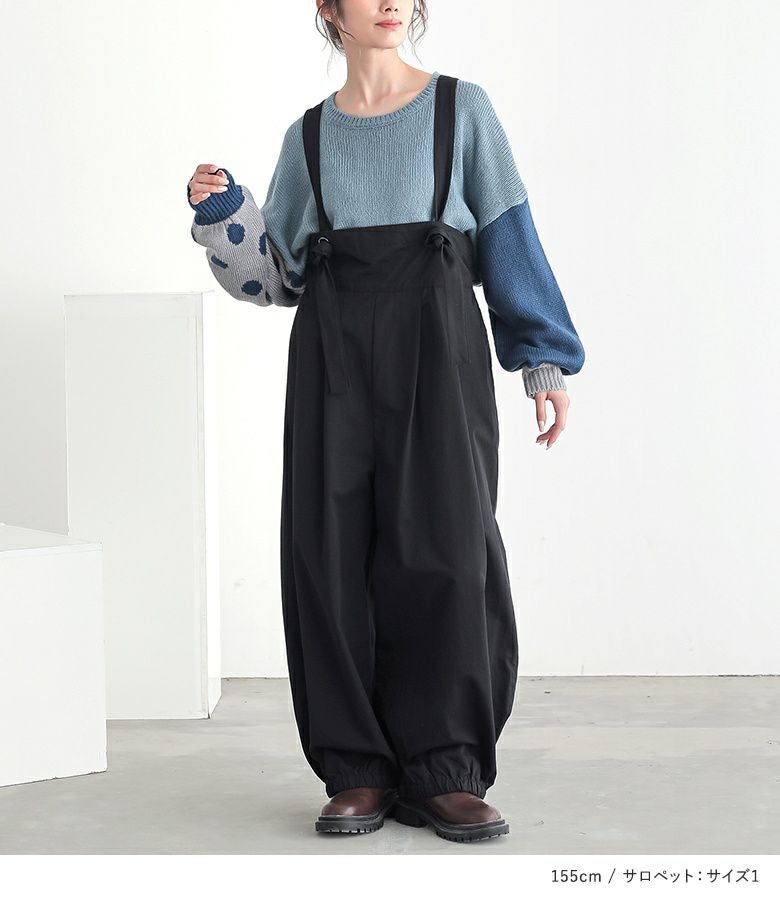 4. 【送料無料】『ドット柄ジャカードローゲージニット×コクーンサロペットコーデ2点SET』【メール便不可】【50】