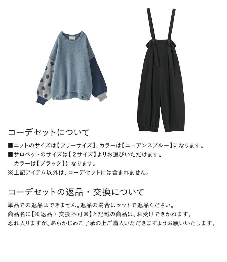 『ドット柄ジャカードローゲージニット×コクーンサロペットコーデ2点SET』