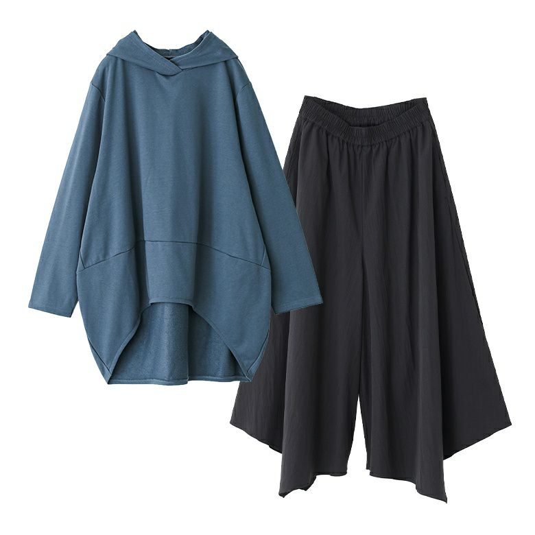 『イレギュラーヘムガウチョパンツ×ミニ裏毛コクーンパーカーコーデ2点SET』
