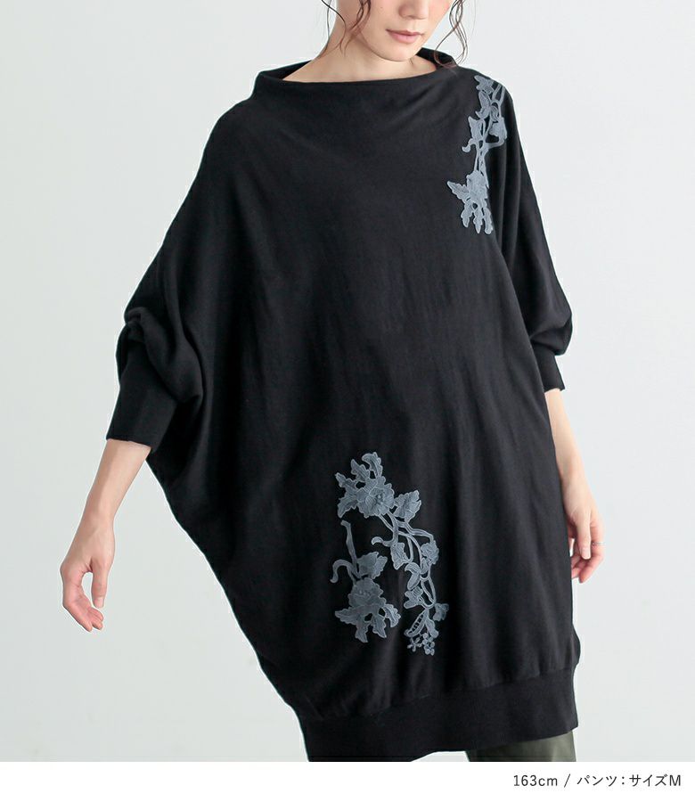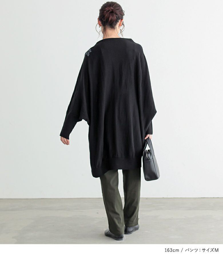 4. 【送料無料】『レースモチーフドルマンチュニックニット×裏起毛フレキシンテーパードパンツコーデ2点SET』【メール便不可】【50】