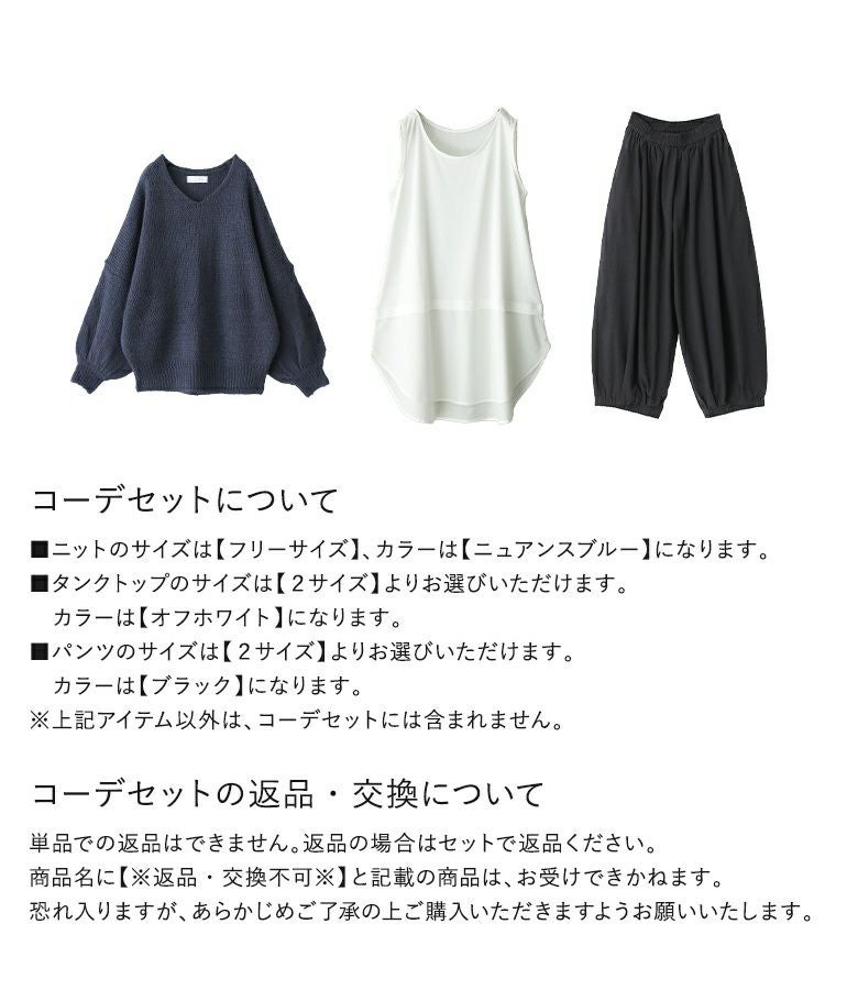 『モヘヤタッチドロップショルダーニット×吸水速乾レイヤードタンクトップ×アラビアンパンツコーデ3点SET』