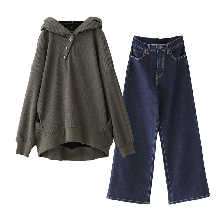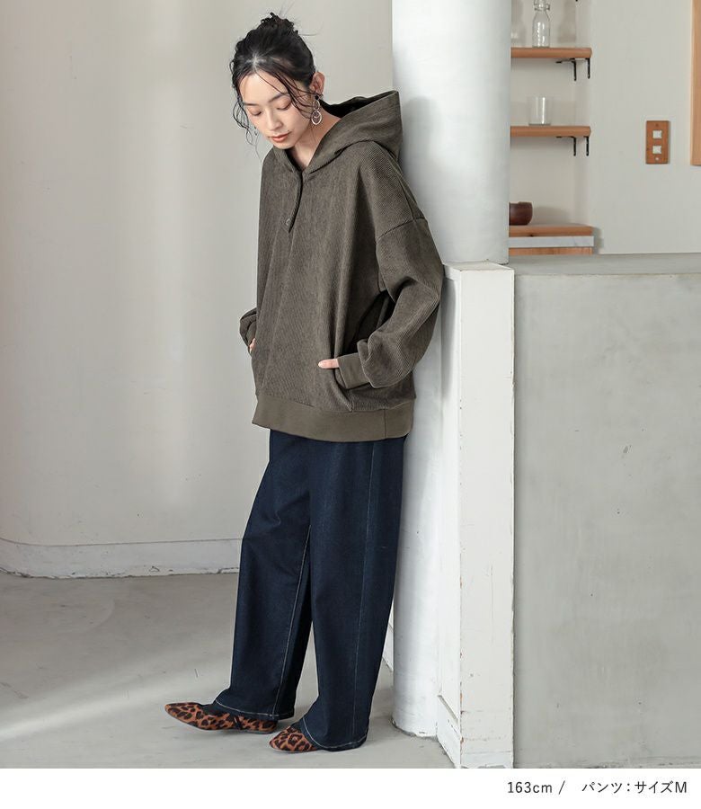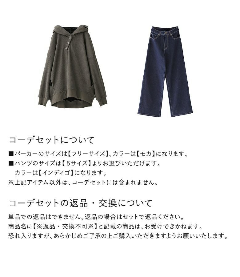 『裏ベロアコーデュロイパーカー×ストレートワイドパンツコーデ2点SET』