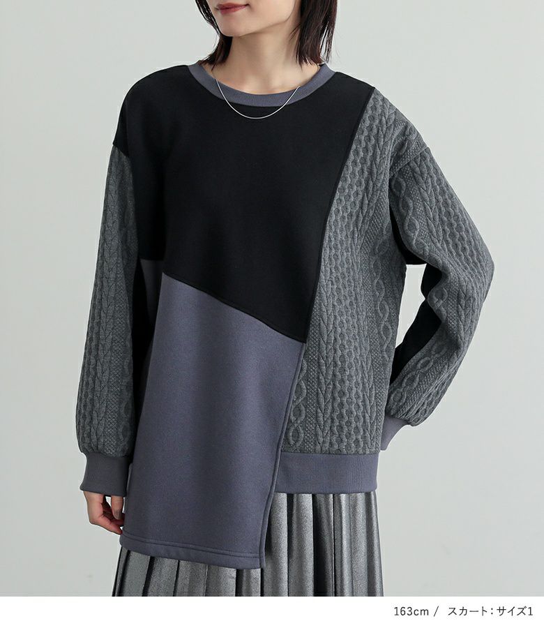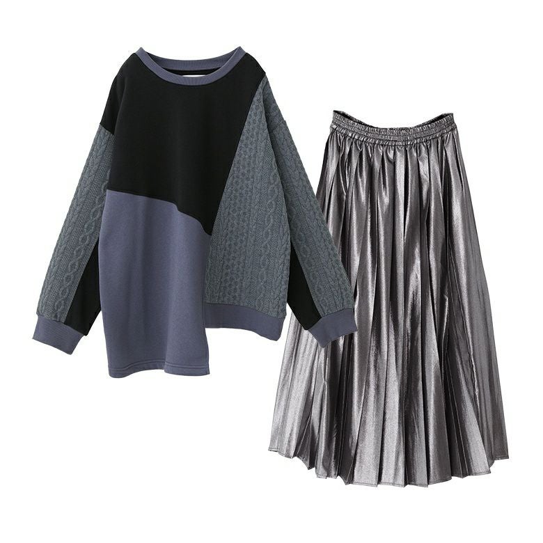 『裏起毛アシメ異素材プルオーバー×メタリックプリーツスカートコーデ2点SET』