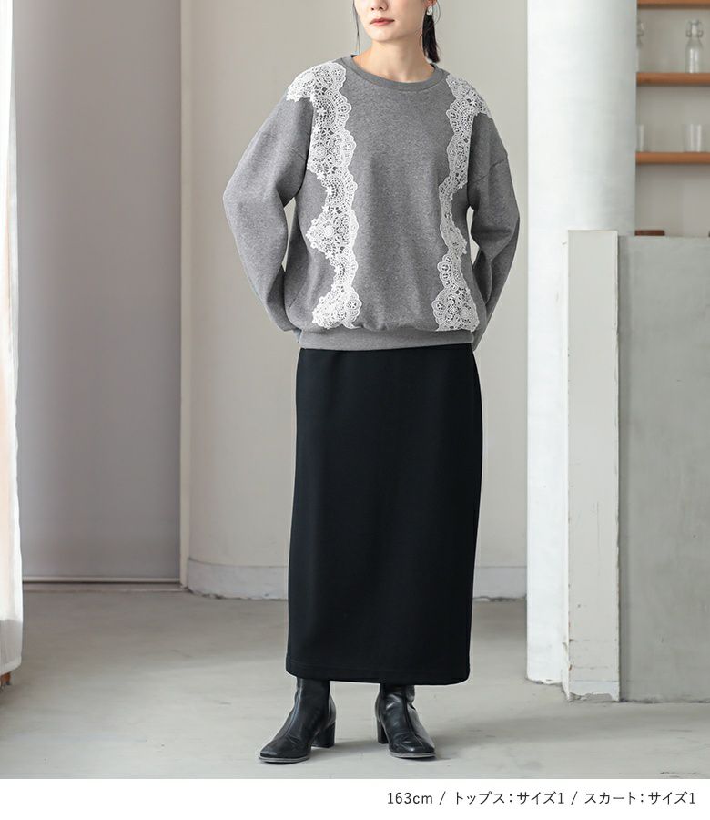 4. 【送料無料】『レーステープ裏起毛プルオーバー×ナローシルエットロングスカートコーデ2点SET』【メール便不可】【40】