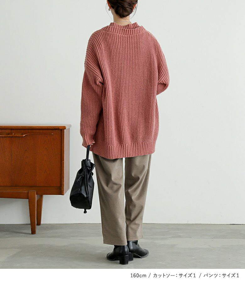 4. 【送料無料】『ウールライクすっきりテーパードパンツ×ボーダーバスクロンT×ダブルリブ畦編みカーディガンコーデ3点SET』【メール便不可】【70】