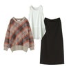 『チェックジャカードニット×吸水速乾レイヤードタンクトップ×ナローシルエットロングスカートコーデ3点SET』