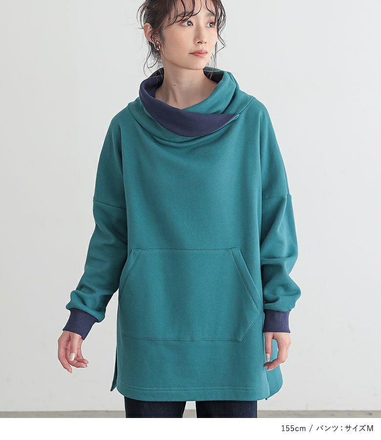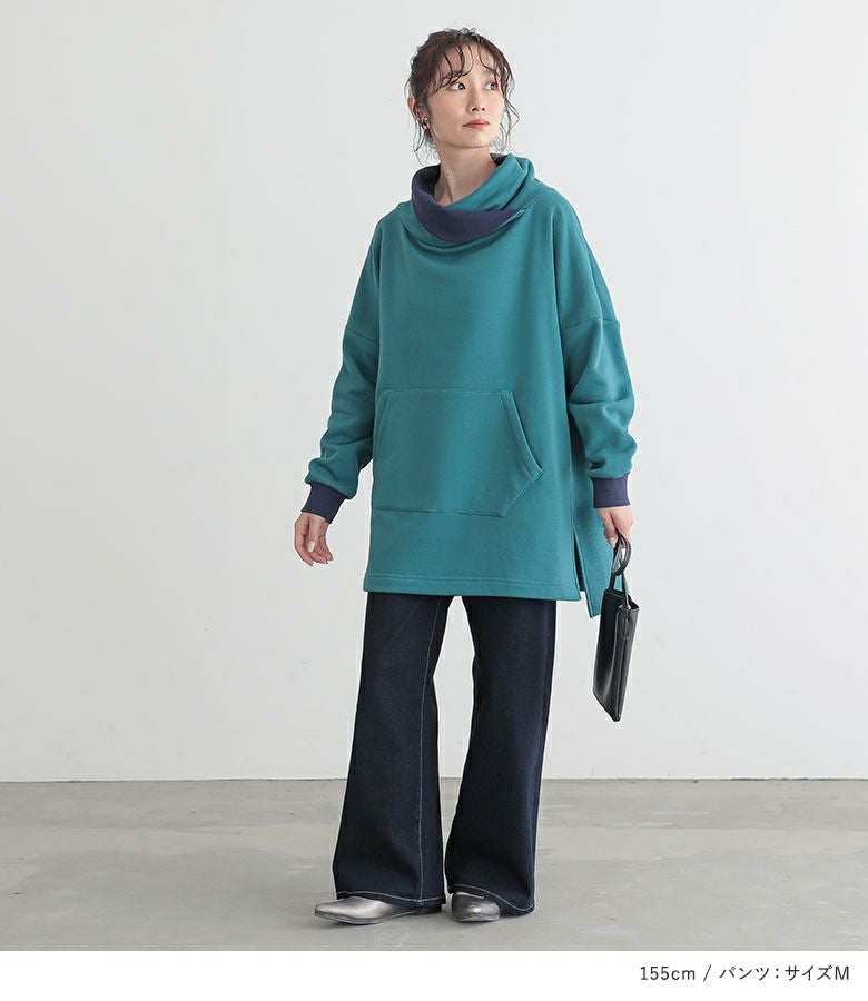 4. 【送料無料】『配色スタンドネック裏起毛チュニック×ストレートワイドパンツコーデ2点SET』【メール便不可】【60】