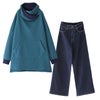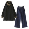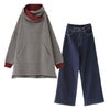 『配色スタンドネック裏起毛チュニック×ストレートワイドパンツコーデ2点SET』