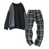 『裏ベロアチェック柄レギパン×配色異素材切替ニットコーデ2点SET』