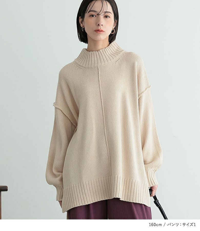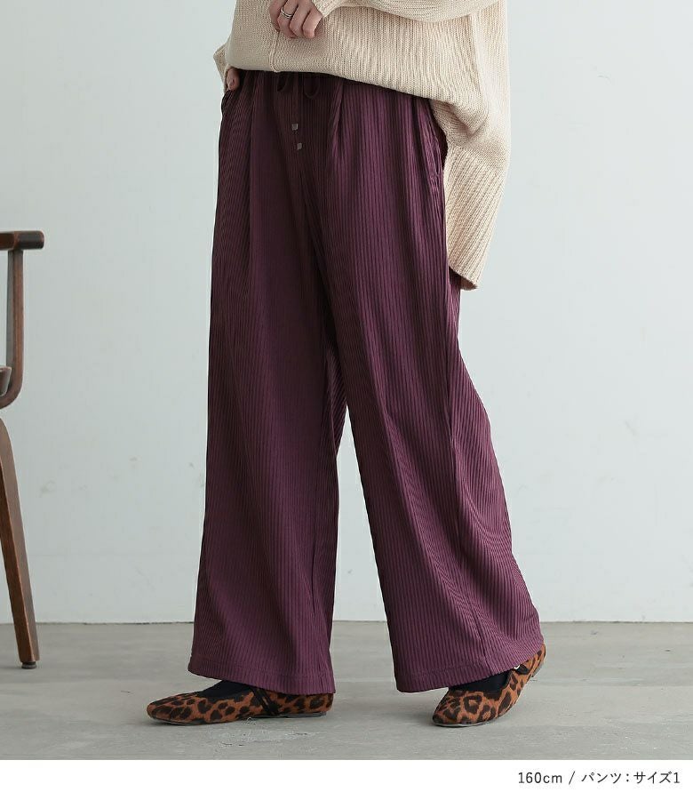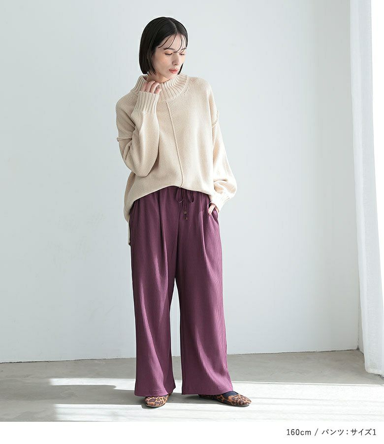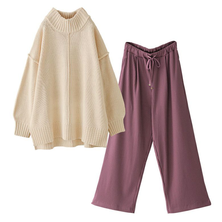 4. 『起毛ワイドリブパンツ×ハイネックアウトリンキングニットコーデ2点SET』【メール便不可】【40】