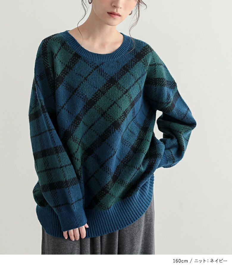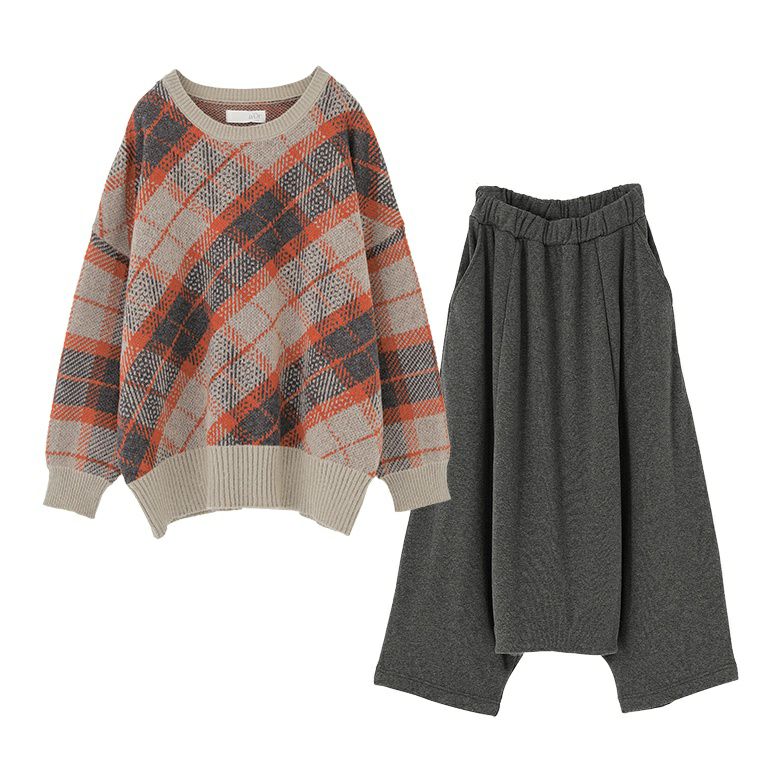 『チェックジャカードニット×裏シャギーサルエルパンツコーデ2点SET』