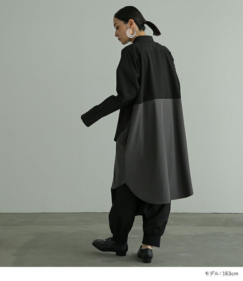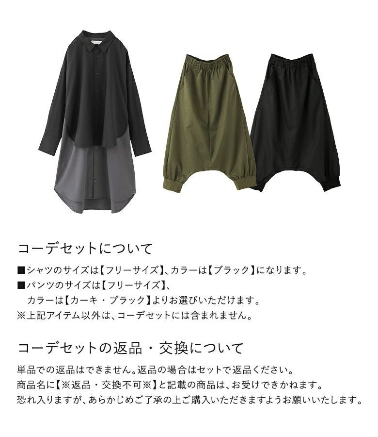 4. 【送料無料】『レイヤードロングシャツ×裾リブサルエルパンツコーデ2点SET』【メール便不可】【40】