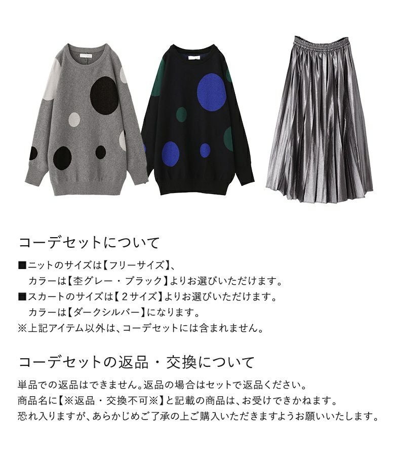 4. 【送料無料】『ドットドルマンニット×メタリックプリーツスカートコーデ2点SET』[2点コーデセット 2025 レディース ニット トップス セーター クルーネック スカート ロングスカート プリーツスカート【メール便不可】【50】