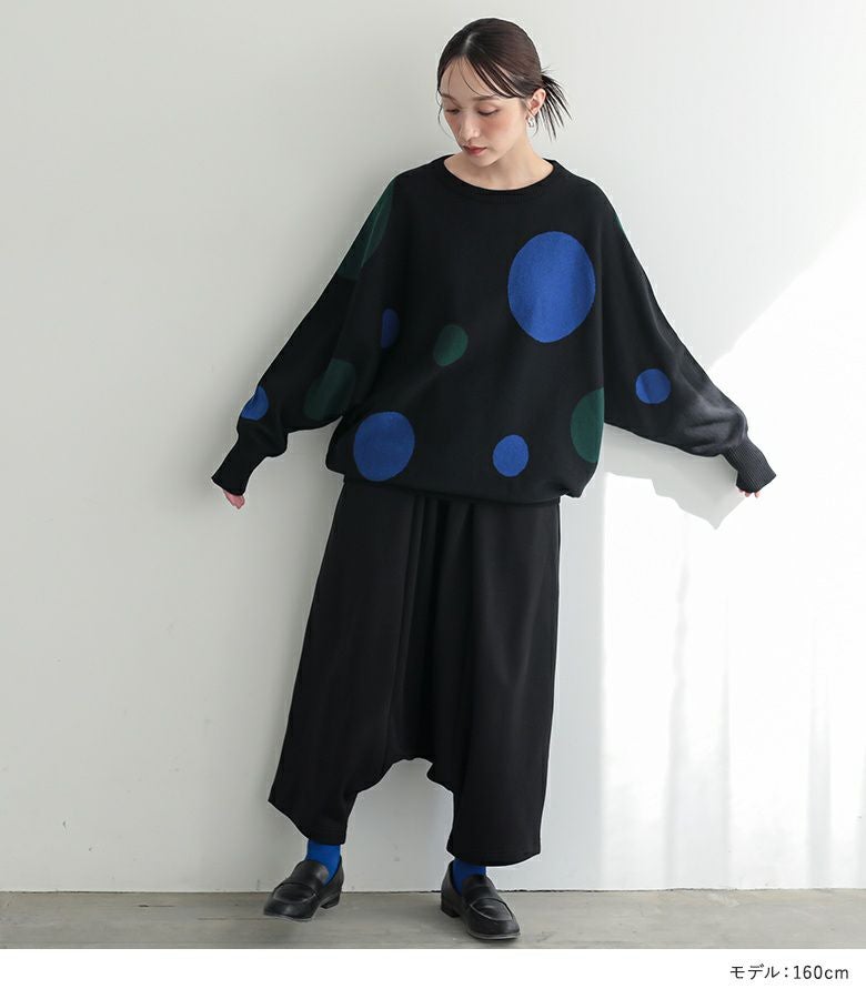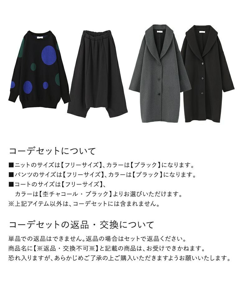 4. 【送料無料】『ドットドルマンニット×裏シャギーサルエルパンツ×ウールライクショールカラーコートコーデ3点SET』【メール便不可】【90】