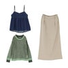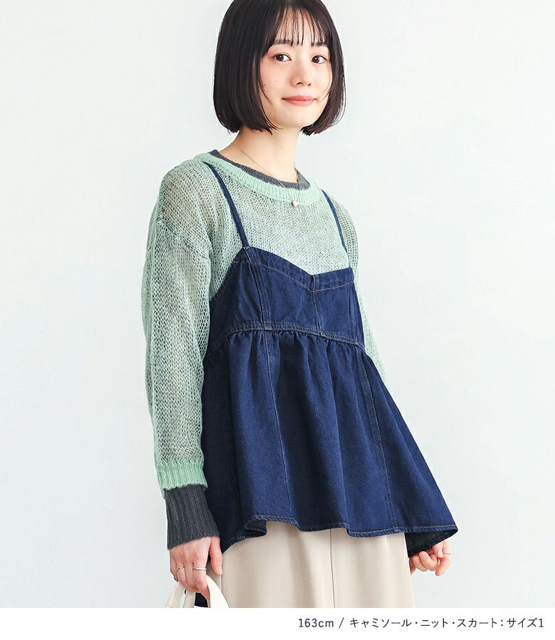 『デニムキャミソール×配色レイヤードモヘヤタッチニット×ツイルナロースカートコーデ3点SET』