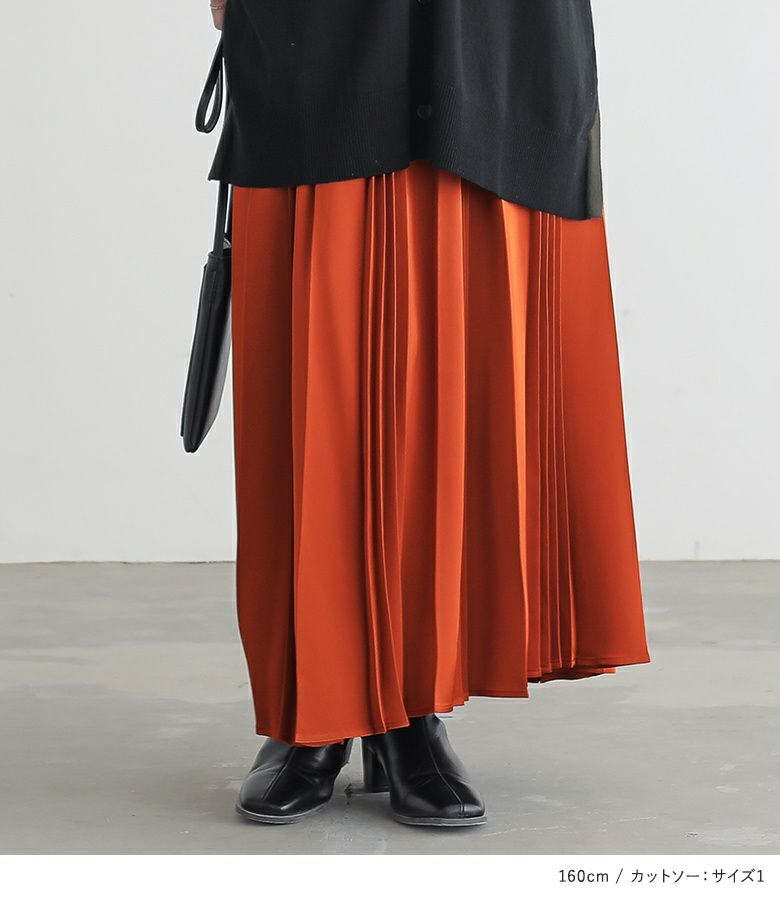 『配色ニットカーディガン×フレンチスリーブ刺繍カットソー×サテンプリーツスカートコーデ3点SET』