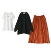 4. 【送料無料】『配色ニットカーディガン×フレンチスリーブ刺繍カットソー×サテンプリーツスカートコーデ3点SET』【メール便不可】【65】