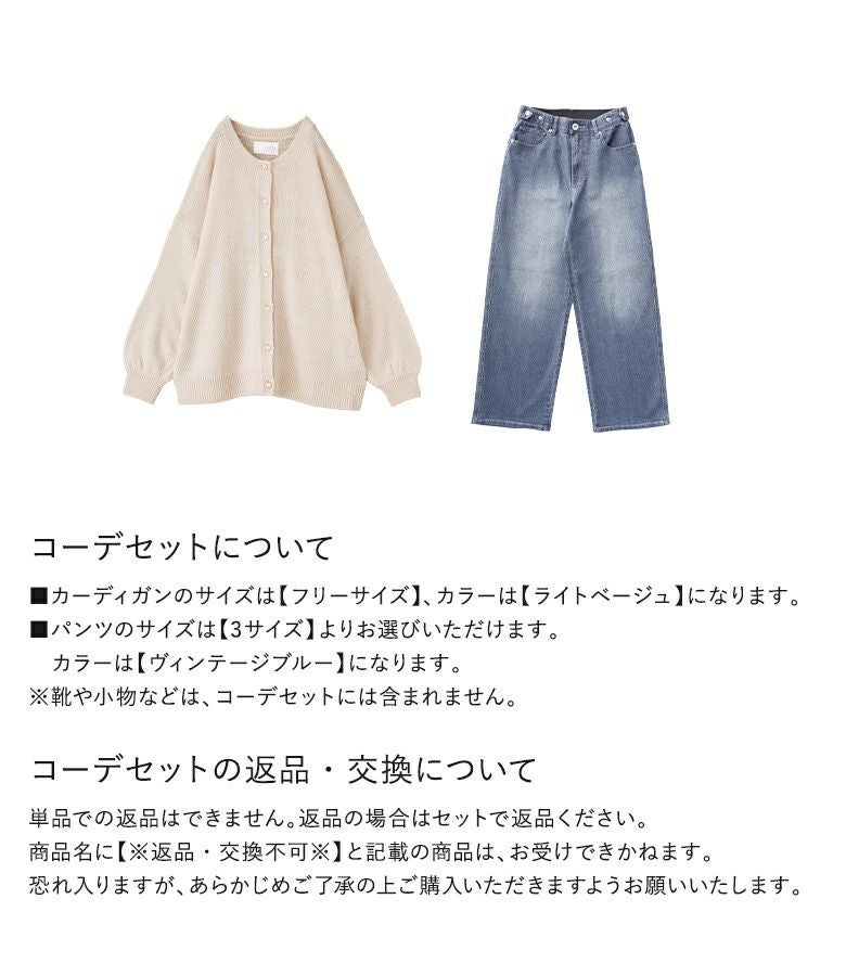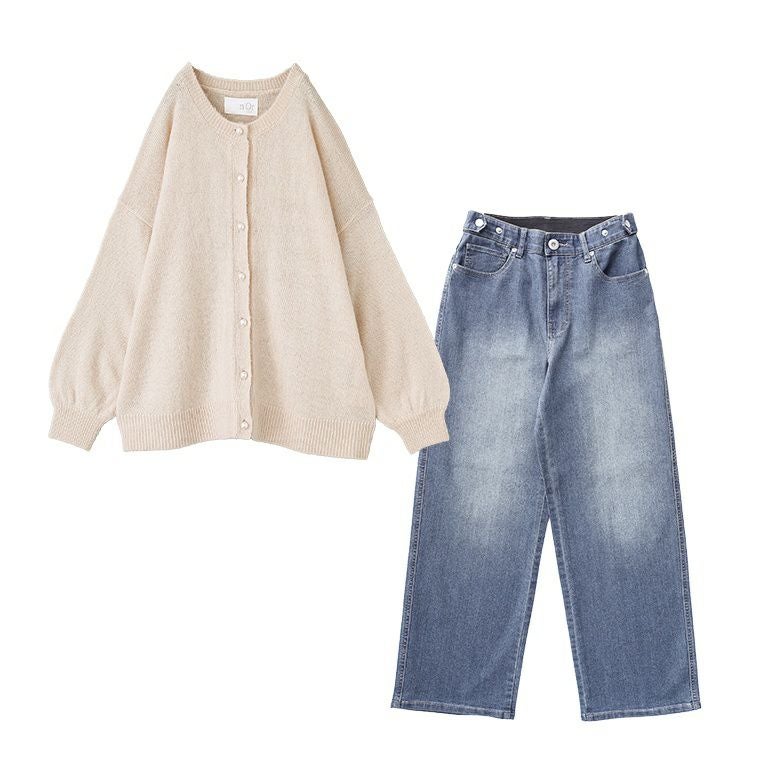 【送料無料】『モヘヤタッチカーディガン×ストレートデニムパンツコーデ2点SET』