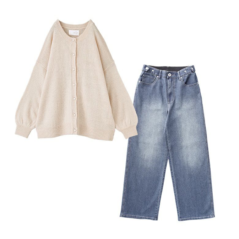 4. 【送料無料】『モヘヤタッチカーディガン×ストレートデニムパンツコーデ2点SET』【メール便不可】【50】