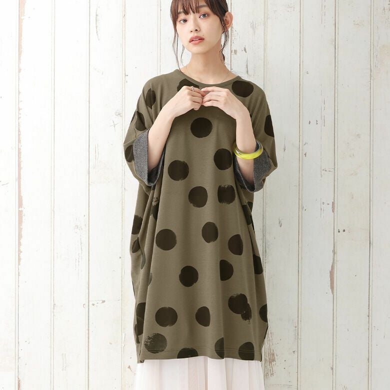 1.かすれドット柄プリントチュニックワンピース