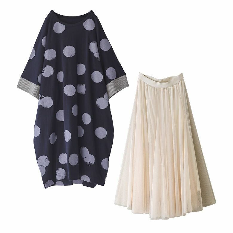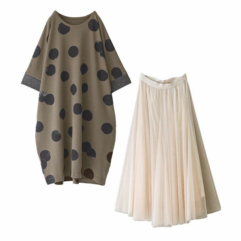 『かすれドット柄に心惹かれるレイヤードコーデ2点SET』