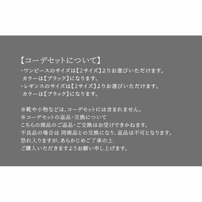 ※コーデセットの返品・交換について。不良品の場合は同商品との交換となり、返品は不可となります。恐れ入りますが、予めご了承の上、ご購入いただけますよう宜しくお願い申し上げます。