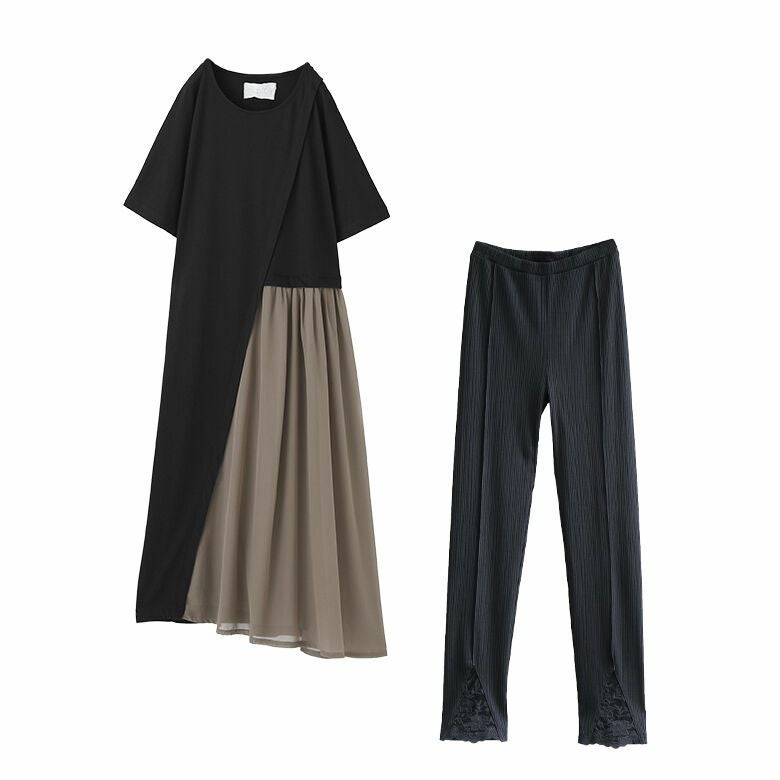 配色&アシンメトリーデザインで視線を集める、2点コーディネートSET。