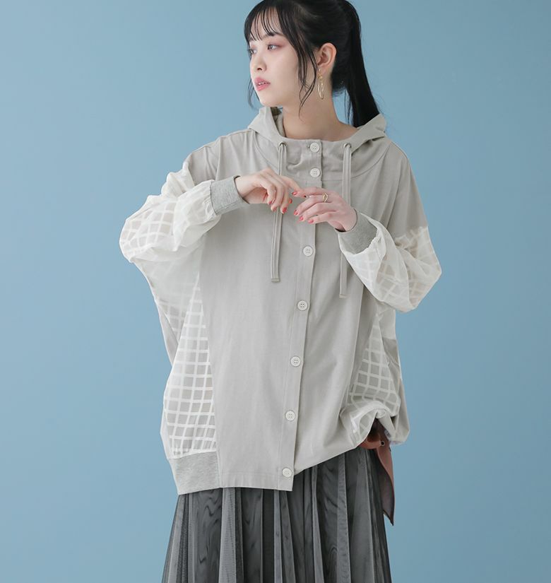 素材で魅せるシアーパーカー×スカート2点コーデSET♪