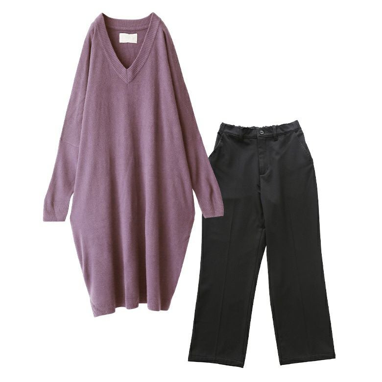 【送料無料】『シンプルに着こなすロングニットワンピコーデ2点SET』