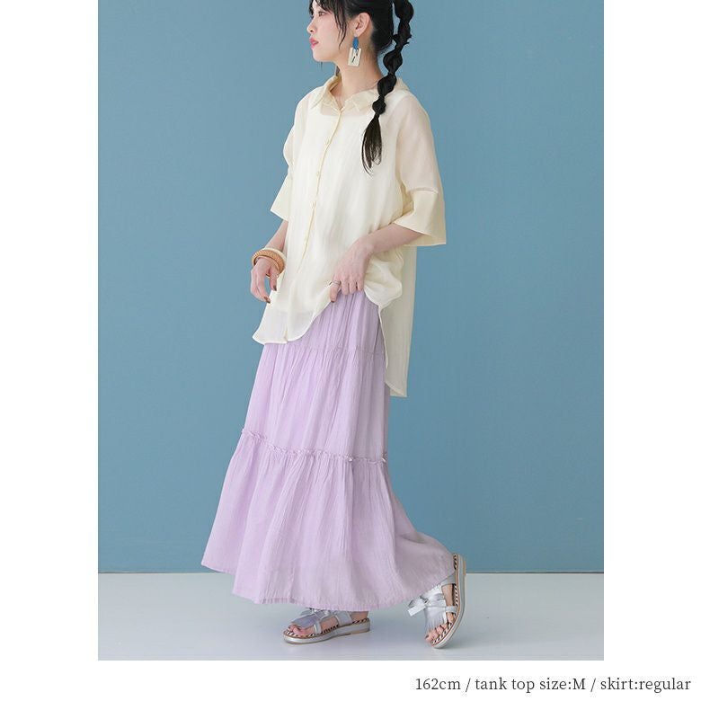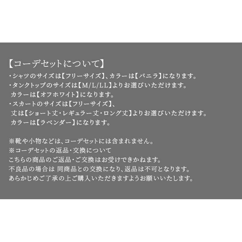 送料無料★選べる丈感スカート×ブラウス×タンクトップ3点コーデSET♪