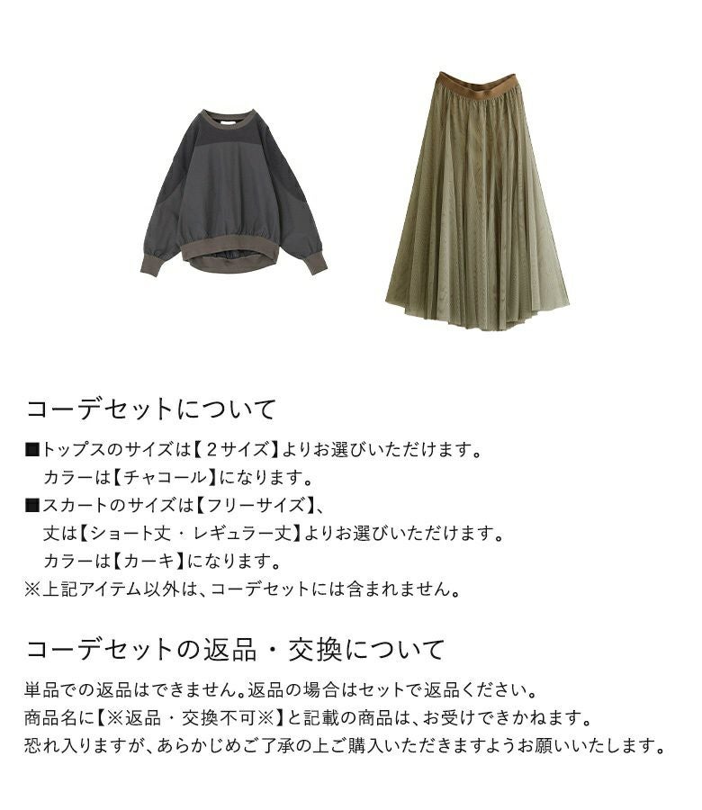 他の画像を見る 届いてすぐにお洒落に変身2点コーデSET♪ 『異素材キャンディースリーブスウェット×配色ボリュームチュールスカートコーデ2点SET』【メール便不可】【20】 ¥ 6,950 税込 (0)