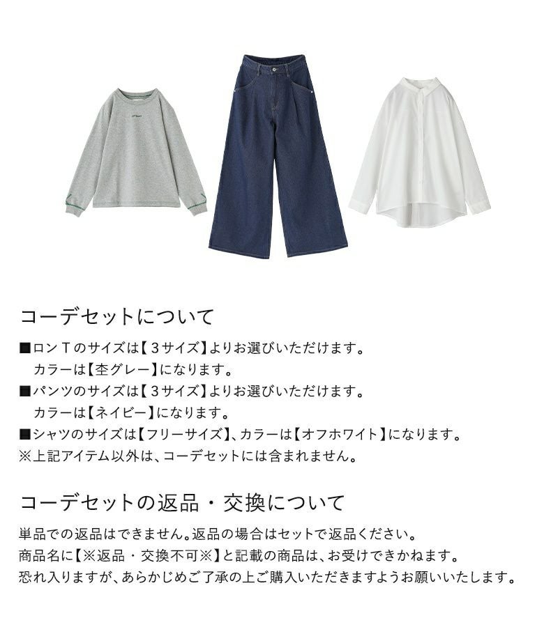 他の画像を見る 送料無料★届いてすぐにお洒落に変身3点コーデSET♪ 【送料無料】『配色ステッチロゴ刺繍ロンT×タックデニムパンツ×バックボタンスリットシャツコーデ3点SET』【メール便不可】【45】 ¥ 11,930 税込 (0)