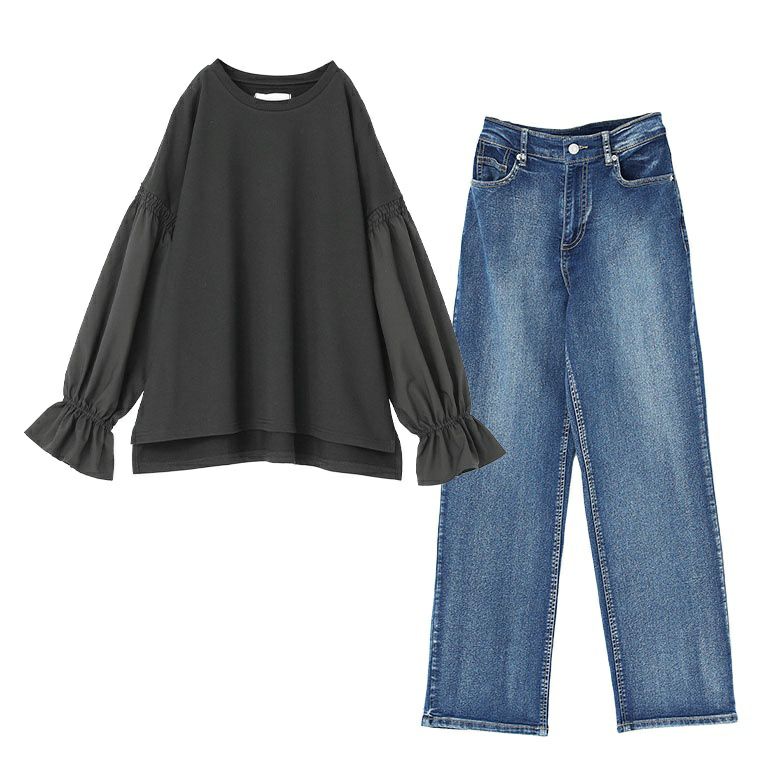 他の画像を見る 届いてすぐにお洒落に変身2点コーデSET♪ 『異素材キャンディースリーブスウェット×お腹すっきりデニムパンツコーデ2点SET』※返品交換不可※【メール便不可】【30】 ¥ 7,920 税込 (0)