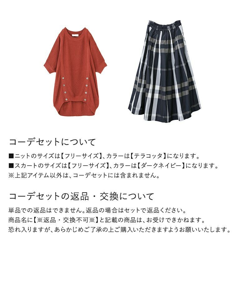他の画像を見る 送料無料★届いてすぐにお洒落に変身2点コーデSET♪ 【送料無料】『フロント釦ラグランニット×チェック柄タックフレアスカートコーデ2点SET』【メール便不可】【60】 ¥ 8,940 税込 (0)