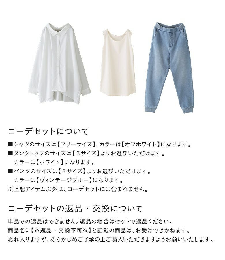 他の画像を見る 送料無料★届いてすぐにお洒落に変身3点コーデSET♪ 【送料無料】『カットデニムジョガーパンツ×ドルマンシルエットデザインシャツ×シンプルコットンタンクトップコーデ3点SET』【メール便不可】【30】 ¥ 11,530 税込 (0)