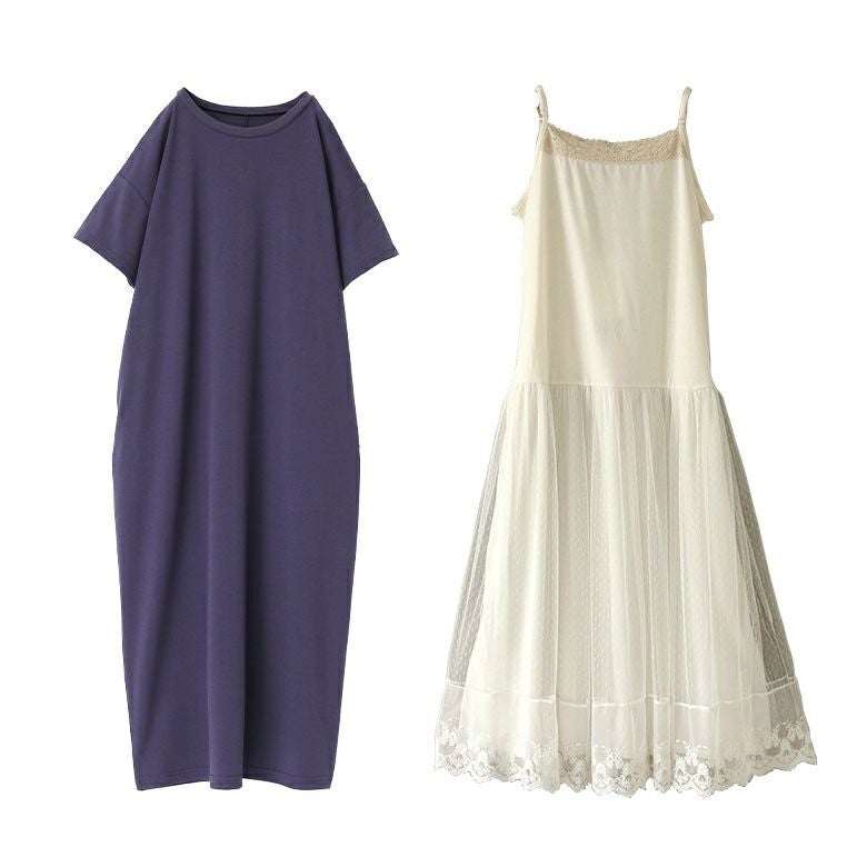他の画像を見る 送料無料★届いてすぐにお洒落に変身2点コーデSET♪ 【送料無料】『スモッキング刺繍ストライプワンピース×贅沢レースロングペチワンピースコーデ2点SET』【メール便不可】【20】 ¥ 8,940 税込 3.50 (2)