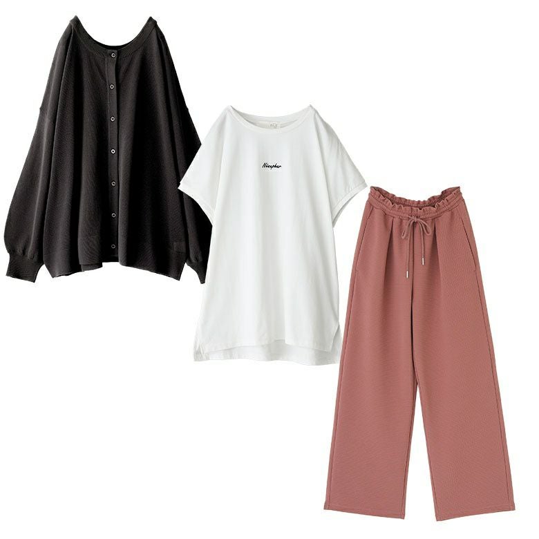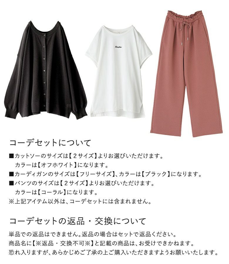 他の画像を見る 届いてすぐにお洒落に変身3点コーデSET♪ 『接触冷感カットソーワイドパンツ×冷感キープフレンチスリーブカットソー×シアーニットカーディガンコーデ3点SET』※返品交換不可※【メール便不可】【35】 ¥ 9,340 税込 (0)