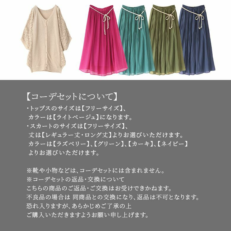 他の画像を見る 送料無料★丈が選べる!ふわさらロングスカート入り2点コーデSET♪ 【送料無料】『透かし編みニットでお洒落にサマになるコーデ2点SET』※返品・交換不可※【メール便不可】 ¥ 8,940 税込 SOLD OUT 5.00 (2)