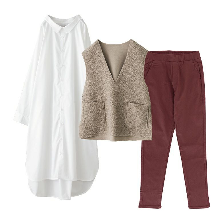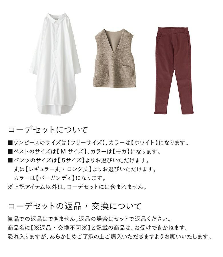 他の画像を見る 送料無料★届いてすぐにお洒落に変身3点コーデSET♪ 【送料無料】『リバーシブルベスト×シンプルシャツワンピース×NEWフレキシンストレッチレギパンコーデ3点SET』【メール便不可】【60】 ¥ 10,480 税込 (0)
