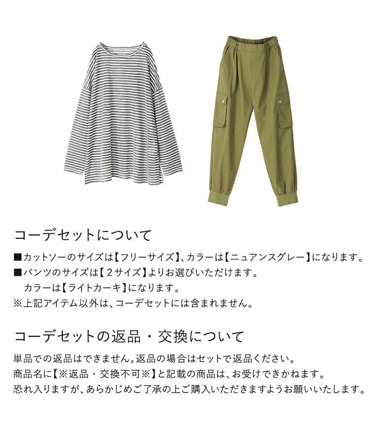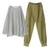 『シアーボーダーカットソー×ストレッチジョガーパンツコーデ2点SET』