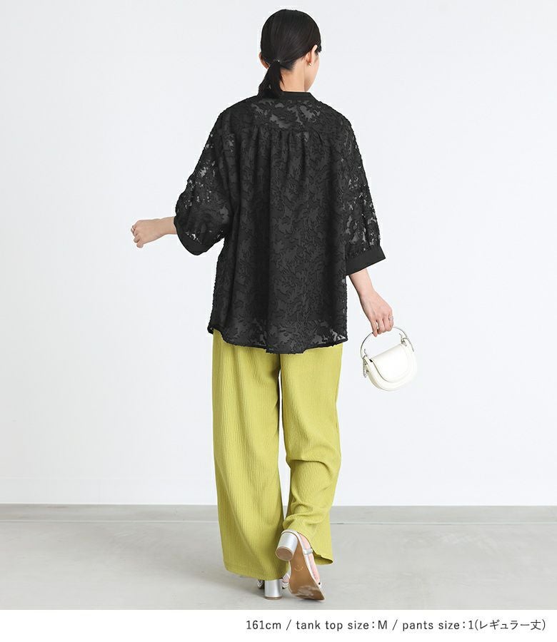 4. 『ジャガードシアーブラウス×ストレートパンツコーデ3点SET』※返品・交換不可※【メール便不可】【30】